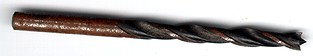 Center your bit on hole A and then CAREFULLY drill hole B PART WAY THROUGH THE BRIDGE. The mounting hole will try to "suck" your bit through the top so start the hole slowly. Once the hole is approximately 1/8" deep. Twist the chuck that holds the bit by hand. A sharp bit will quickly remove enough wood with three or four twists. The object is to drill enough space for the screwhead and the pearl inlay dot which covers it. Usually, this is slightly less than 1/4" of depth. Try to leave as much bridge wood as you can get away with.